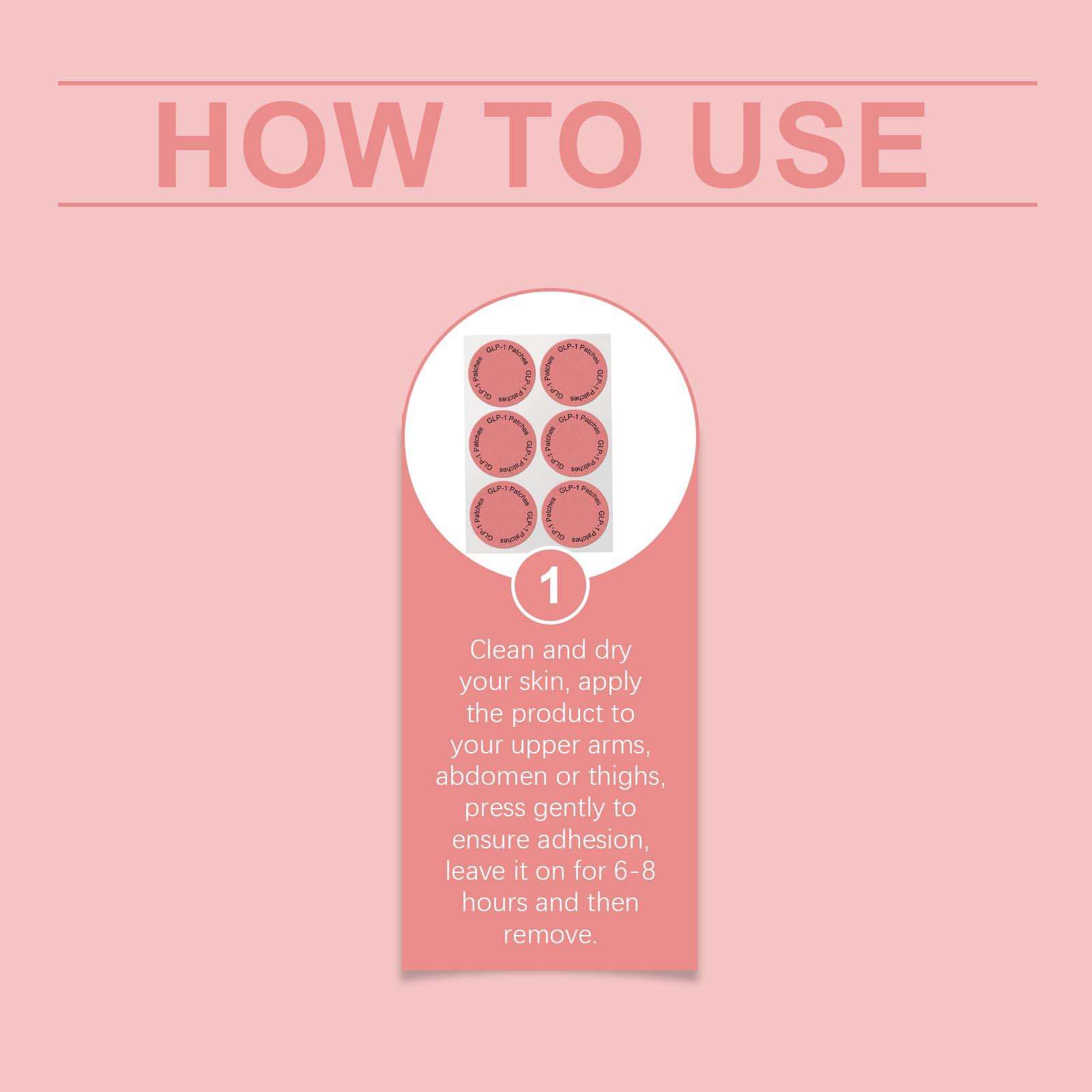 Clean and dry your skin,apply the product to your upper arms, abdomen or thighs, press gently to ensure adhesion, leave it on for 6-8 hours and then remove.